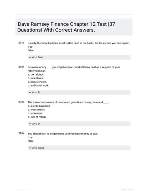 Download Dave Ramsey Chapter 7 Test A Answers PDF