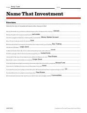 Read Student Activity Sheet Name That Investment Answer Reader
