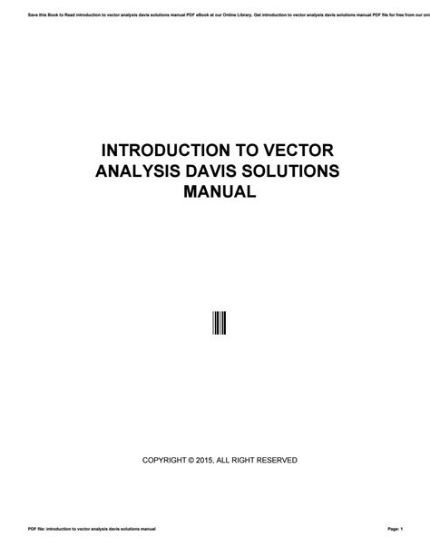 Read Online Introduction To Vector Analysis Davis Solutions Manual Kindle Editon By Click Button. Introduction To Vector Analysis Davis Solutions Manual it’s easy to recommend a new book category such as Novel, journal, comic, magazin, ect. You see it and you just know that the designer is also an author and understands the challenges involved with having a good book. You can easy klick for detailing book and you can read it online, even you can download it